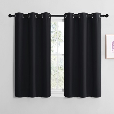 PiccoCasa Rod Pocket Solid Blockout Darkening Insulated Curtain for Bedroom Living Room 2 Pcs 52 x 63 Inch Black