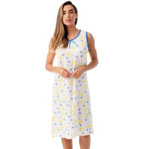 Incredible Comfort, Effortless Style Discover the ultimate in relaxation with our sleeveless nightgown, designed for dreamy nights and laid-back lounging. Crafted from luxuriously soft brushed jersey knit fabric, this sleep dress feels as good as it looks. Whether you're curling up in bed, unwinding after a long day, or tackling household tasks in comfort, this nightie is your perfect companion. A Touch of Charm Who says bedtime can’t be stylish? This nightgown blends effortless comfort with a flattering silhouette to keep you looking cute around the clock. The feminine bow detail at the neckline adds a delicate touch, while the choice of floral, celestial, and butterfly prints offers something for every taste. With vibrant colors and a relaxed yet shapely fit, you’ll feel as fabulous as you do cozy.