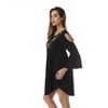 Riviera Sun Cold Shoulder Floral Embroidered Casual Dress (Black, Medium)