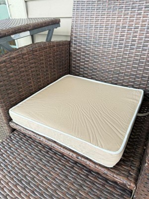 [This review was collected as part of a promotion.] This cushion is soooo much nicer than I expected. It came vacuum sealed so it was pretty flat but it did puff right up after opening it. Upon first glance I was like mehhh, looks like any other cheap thin patio cushion... Which are usually not that cushy at all. Like when you sit on them they just sink right down, not providing much comfort or support for your bottom or your back. So I put one of the cushions on a fold up chair just to test it out. My 7 year old tried it first and was like, "Hey, mama, you have got to try this cushion!" And as soon as I sat down I knew why she was so impressed... For only being 2" thick it has the perfect amount of cushiness while still being firm enough to provide support and keep you from sinking right down. I would describe it as a medium firm memory foam. So even though these may look like just regular thin patio cushions they offer a level of comfort that is far superior to any others I've ever sat on. (Any others of similar thickness anyways.) I cannot speak on the durability or longevity because I haven't had them long enough yet. When it gets warmer I'm going to pressure wash our outdoor chairs and use them on the carport/porch.