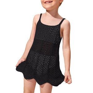 - This adorable cover-up features hollow-out designs perfect for the beach, making it an ideal swimsuit cover-up skirt for toddler girls. With a stylish spaghetti strap and scoop neck, it’s a fashionable beach outfit for little ones.