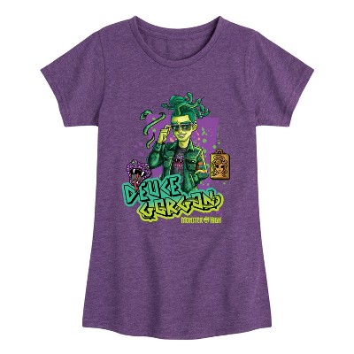 Girls' Monster High Clawsome, Fangtastic, Creeperific & Zapptacular Fitted Short Sleeve Graphic T-Shirt - Heather Black - Small