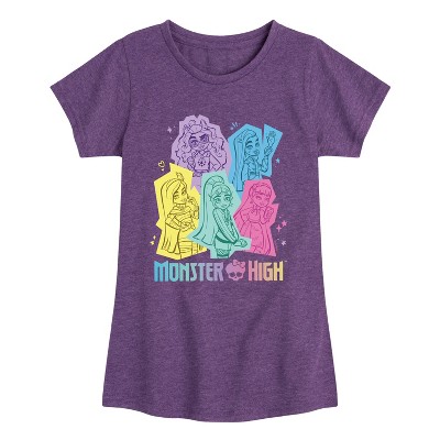 Monster High - Rainbow Grid - Youth Girls Fitted Short Sleeve T-Shirt - Freaky meets fabulous in Monster High graphic apparel starring ghouls like Draculaura, Frankie Stein, and Clawdeen Wolf. These fierce, fashion-forward designs celebrate self-expression, individuality, and monster style.