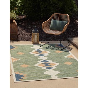 Imagine being enveloped by the canopy of a tropical rainforest, the rich colors of palm leaves all around, the sounds of waterfalls in the background and a warm misty breeze. Feel transported to paradise each time you step on the Baja Outdoor Collection. Inspired by classical illustrations of nature, these rugs are filled with warm earth tones, from ivory and tan to evergreen and rust red. Featuring Aztec-inspired geometric patterns and stripe patterns, the collection also includes an array of botanical patterns. Choose from designs ranging from a variety of elegant palm fronds to stylishly bold flamingo displays. Made of polypropylene, each rug is constructed using machine woven power looming, the low pile height holds up well in high traffic areas. With its kid-friendly stain-resistant construction and wide selection of shapes and sizes, it's a low maintenance choice for both indoor and outdoor placement.