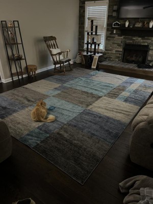 Love this rug. All the different shades of colors helps to match any house. We bought the gripper pad to put under the rug so it isnt moving around our LVP floors too much. Its low pile that makes it easy for me, an elderly lady, to move around, yet soft enough the dog likes it. It didn't smell too bad of chemicals when i unwrapped it. I let is sit in a spare room with fan for a few days and it was fine when moved to my living room.