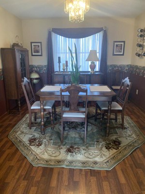This rug fit in our living room area that has an unusual shaped space. The colors are vivid and beautiful with our decor.
