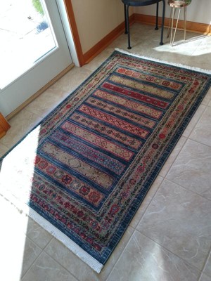 I bought this 3x5 rug last month and I am very happy with it. There were a couple of crinkles across it from being rolled up and shipped that took a while to flatten out but they eventually did. Also the corners were tending to curl up at first but are slowly flattening out as well. The colors are just as I had hoped and I believe are true to the pictures online. I put a thinner pad under it that I bought at a local store to keep it from moving around. I am very happy with my purchase of this rug!