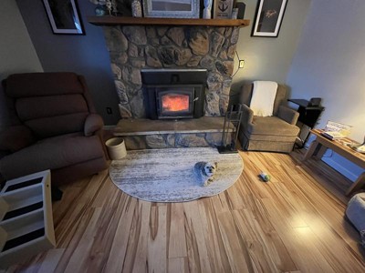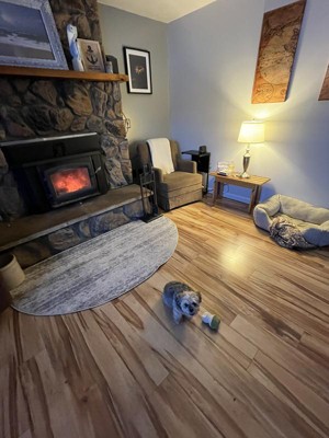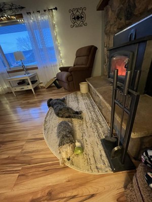 So I did guess the size but the size is perfect and accents the floors and fire place perfectly! The dogs don’t mind it either! I feel safer finally having a rug this size for our wood stove