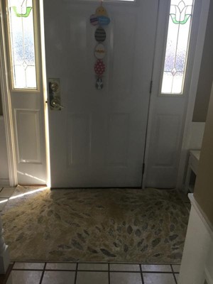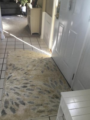 Lovely soft colors in this rug compliments my entryway. Nice material that brightened area.