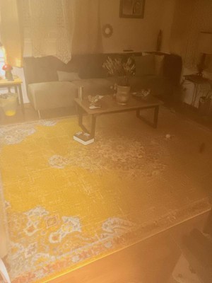 I don't usually buy anything yellow, but this rug just struck me as so pretty I had to get it. My house needed a little brightening and this rug did the trick. I was so delighted with it. It sits in my dining room under the table and it looks so good. Your service in delivering it a few days, just sat some chairs on the corners and it worked. If I ever need another rug, I was great and your suggestions on how to flatten it were perfect. My rug was laying flat in will gladly buy from your company.