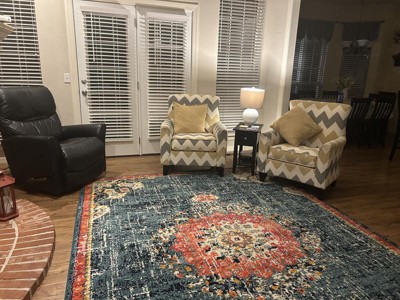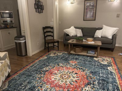 Beautiful rug. Colors were true to the ad. Matches our furniture. Arrived quickly and easy to unfold and lay. We love it.