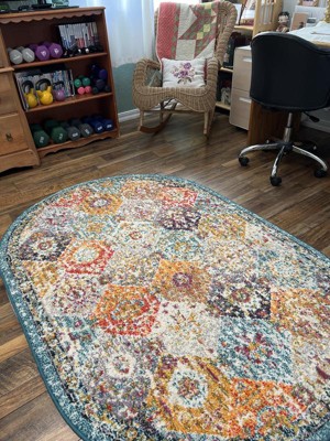 This rug was intended for a home office/workout room and is what we envisioned. It is just the right thickness, shape and size. The colors are vibrant and varied enough to go with any color scheme.
