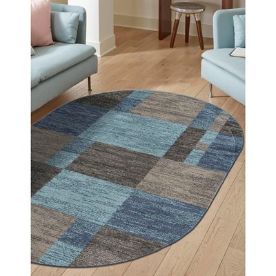 Unique Loom Paxon Trellis Collection Area Rug - Maeve (5' 3" x 8' Oval Ivory Aqua/Ivory)