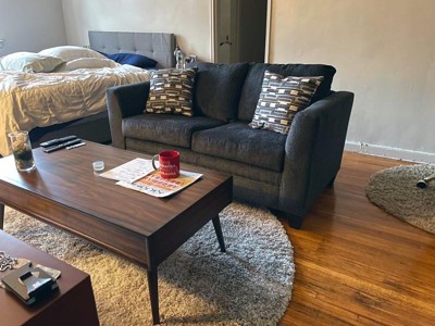 I bought this for a small area of my living room and it fits perfectly between pieces. It is very good quality. Very comfortable -grand kids love laying on it and we love the feel of it to walk on. Colors are very pretty with my gay-beige combination furniture.