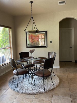 Love the color and shape looks great on new wood floors! Fits perfect in space .