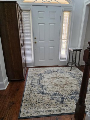 Love this rug! Has a bit more blue, and darker than I expected from the stock photo, but still works.