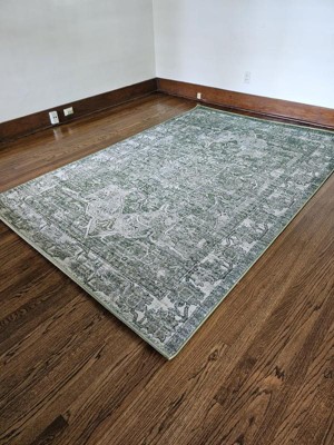 Beautiful rugs that complements warm-colored spaces. The rug flattened down quickly. It has a beautiful deep green color
