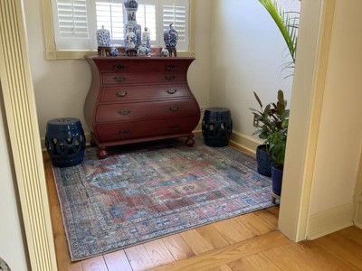 This rug has received positive feedback for its beautiful colors, design, and practicality, making it a great addition to various spaces in the home. Guests appreciate its washable feature, which is ideal for households with pets. While some noted it is thinner than expected, many found it perfect for low-profile areas. Overall, it combines style and functionality, enhancing the aesthetic of any room while being easy to maintain.