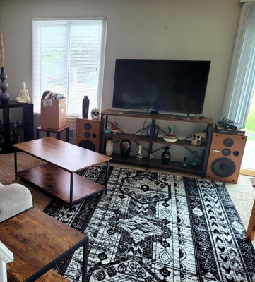 Really love this rug, huge size, the black and white print pops and looks exactly how I was hoping! Good quality and just like the picture!