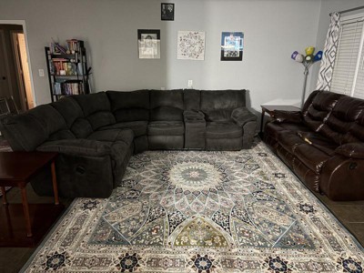 This rug is large and beautiful, however, the colors are a little different than they looked online. It is very soft and plush. Lots of design, and it’s very ornate!