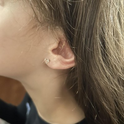 Guili Golden Glimmer 4mm CZ Stud Earrings for Baby/Kids with Martini 3-Prong Setting in Sterling Silver, gracefully plated with gold finish