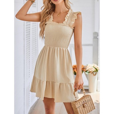 INSPIRE CHIC Women's 3/4 Sleeve Split Neck Wear to Work Business Sheath Dresses Apricot Large