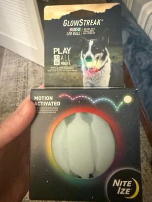 Nite Ize GlowStreak LED Dog Ball, Motion-Activated Light Up Dog Ball, Replaceable Batteries, Disc-O Color Changing LED