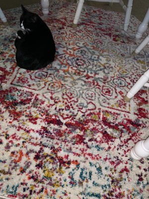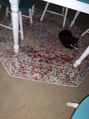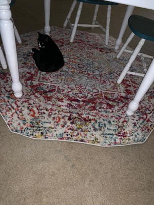 I live in a small apartment that lacks any character, so I wanted a rug that would bring color inside without being overwhelming & this rug is perfect for that! It’s bright, but too bright to where you can’t look away. It’s full of life without being busy or causing a headache. This looks exactly how it looks online & I am so pleased with it! It’s not super padded or shag, but it’s not thin either. It’s a perfect indoor rug that would be great over carpet or tile/wood/etc. I did not order the pad for underneath & I do not regret it. Shipping was incredibly easy. It arrived about 2-3 days after the order was placed! I honestly couldn’t believe it. I was expecting maybe a week, especially during the pandemic. I wish I needed another rug! I want to buy one with how nice the quality of the rug is and how fast it arrived. I’ve had the rug for about a month now & it just fits in with my apartment. It doesn’t look out of place at all and, as you can see, Benny loves it too!