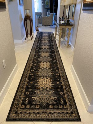 We love the rich colors and quality of this rug. The 16’ length is perfect for our entry hallway. This rug lays completely flat and does not lift at the corners. We are very pleased.