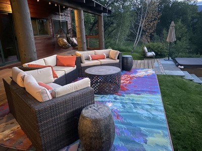 This outdoor rug is a vibrant addition to any space, offering a beautiful array of colors that brighten up patios, decks, and entryways. Guests appreciate its lightweight design, making it easy to clean and maintain. The rug's durability and quality construction ensure it withstands outdoor elements while providing comfort underfoot. Many guests have noted its ability to enhance the aesthetic of their homes, making it a popular choice for both indoor and outdoor use.