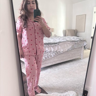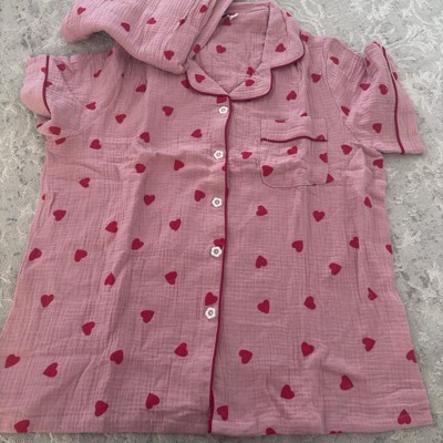 Anna-Kaci Lounge Women's Heart Print Valentine Pajama Set with Short Sleeve Button-Up Top and Relaxed Fit Elastic Waist Pants - Small,