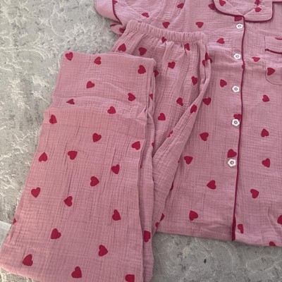 Anna-Kaci Lounge Women's Heart Print Valentine Pajama Set with Short Sleeve Button-Up Top and Relaxed Fit Elastic Waist Pants - 2 of 4Anna-Kaci Lounge Women's Heart Print Valentine Pajama Set with Short Sleeve Button-Up Top and Relaxed Fit Elastic Waist Pants - 3 of 4Anna-Kaci Lounge Women's Heart Print Valentine Pajama Set with Short Sleeve Button-Up Top and Relaxed Fit Elastic Waist Pants - 4 of 4