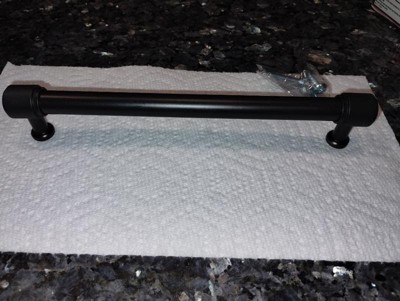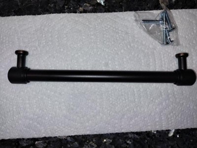 [This review was collected as part of a promotion.] Faraday 7-9/16 inch center to center rubbed bronze cabinet pull is very heavy and it also comes with screws to add it to your cabinet or vanity. It for a bigger hand to grab. It's a smooth handle.