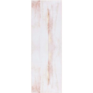 Elevate your space with our contemporary runner rug, crafted to blend seamlessly into any decor. Measuring 2 feet 6 inches by 6 feet, this beige and gold masterpiece is power loomed in China, showcasing sophistication with its understated elegance. With a low pile height of 1/8 inch, it offers a sleek and modern look, making it perfect for hallways and entryways. The polyester pile material ensures durability while being wonderfully soft underfoot. Enjoy peace of mind with its slip resistant backing, and effortless maintenance with its washable feature. This stylish addition, featuring no pattern, enhances the minimalist aesthetic of your home, providing a touch of luxury and comfort. Create an inviting atmosphere with this beautifully crafted runner that embodies simplicity and style.