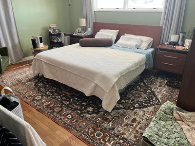 [This review was collected as part of a promotion.] I ordered this rug for our bedroom and I’m really happy with how it looks! The print is really striking and completely transformed the look of our room. It has taken about a week for the folds/roll lines to flatten out, but now it looks great. The colors are a bit more orange-y than expected but I actually like that. I’d say you don’t need a rug pad but it’s not super thick so I may buy one in the future.