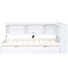 PAGED Twin XL Daybed Modern Wooden Bed Frame with 2 Trundles, Storage Shelves and Light for Bedroom, Living