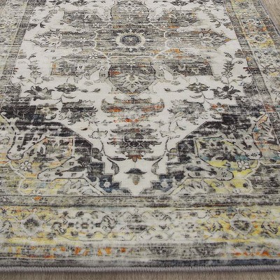 Machine Washable Area Rug Non Slip Non Shedding Rug Boho Vintage Low Pile Carpet Foldable Stain Resistant Rugs for Bedroom Living Room Guest Room