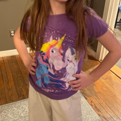 • Strut your stuff with this stylish new girls' t-shirt that is perfect for magical missions, school days, or just dreaming big! Featuring your favorite unicorns, River, Wildstar, and Glacier printed across the front.