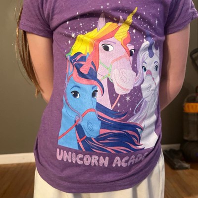 Girls Unicorn Academy River, Wildstar, And Glacier T Shirt - Purple Berry - Small