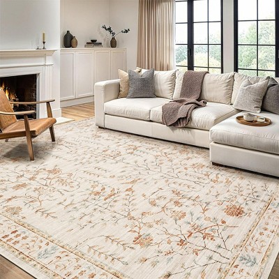 8x10 Washable Rugs, Modern Abstract Print Pattern Non Slip Floor Carpet, for Living Room Bedroom Dining Room, Camel