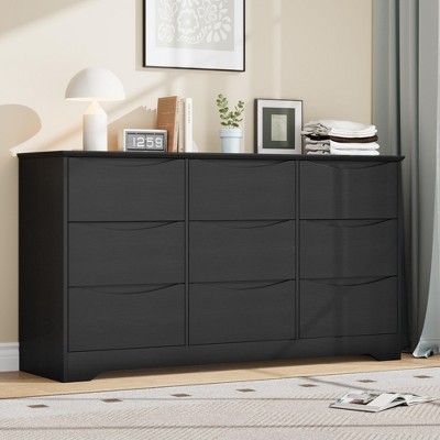 Fluted Dresser 54" Wide, 6-Drawer Wood Dresser for Bedroom, Modern Chest of Drawers, Storage Organizer Cabinet for Living Room, Entryway, Black