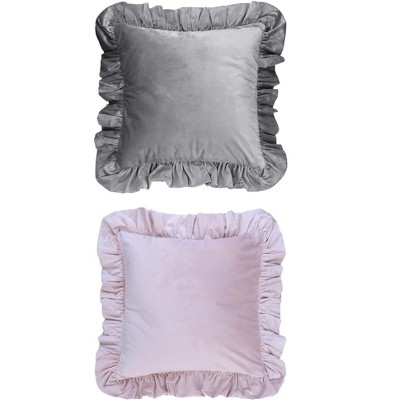 REGALWOVEN 4 Pcs Soft Fuzzy Plush Decorative Throw Pillow Covers for Sofa Couch Bed Living Room Grey/Pink 16" x 16"