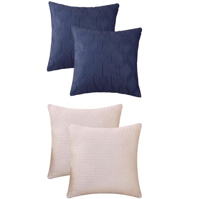REGALWOVEN 4 Pcs Geometric Pattern Throw Pillowcases for Sofa, Living Room Dark Blue/Beige 18" x 18"