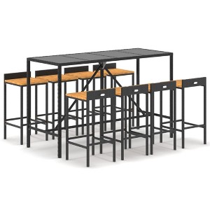 vidaXL Garden Bar Set Black Poly Rattan Large Footrest Garden Bar Set