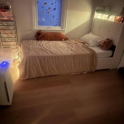 I would give it a 2 star but it’s cute and I like the LED lights. It took a long time to build, I could not figure out how to keep the bed frame down once I installed the hydraulics in, it would not stay down on its own without me holding it down. If I let it go, it went back up. I took out the hydraulics and will have to use my own strength and the help of someone else to help me put anything under the bed. If someone figured that part out please let me know