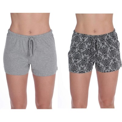 Just Love Womens Pajama Shorts Soft Cotton Lounge Sleep Shorts with Drawstring Waist (Grey - Black Damask (Pack of 2), 1X)