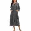 Feature design: zipper robe comes with 3/4 sleeves, making it ideal for doing dishes or other chores. It has two front pockets that are perfect for holding your phone, snacks, remote, or other essentials, and they also help keep your hands warm in cold weather. The mid-calf length is great for stepping out without any hassle. The front zipper design makes it easy to put on and take off, adding a touch of style and elegance to the robe