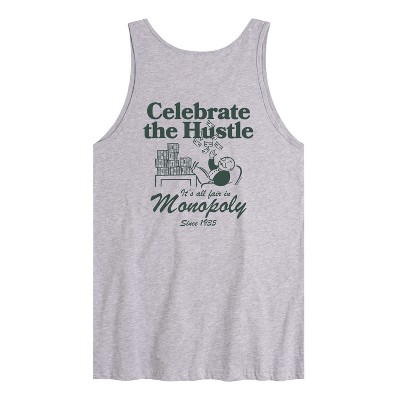 Monopoly - Celebrate The Hustle - Juniors Fitted Short Sleeve Graphic T-Shirt - Show off your inner mogul with Monopoly graphic apparel featuring Mr. Monopoly (Rich Uncle Pennybags), Chance cards, and iconic game pieces like the dog, car, and top hat. It’s a stylish nod to board game domination.
