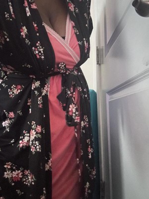 Motherhood Maternity Women's Maternity Robe and Nursing Chemise Sleep Set- Black, Large
