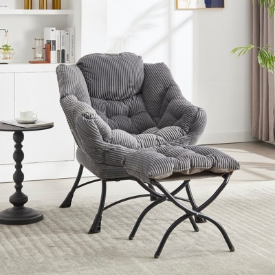 Folding Saucer Chair for Adults, Comfy Faux Fur Reading Lounge Chair with Plush Cushion & Metal Legs, No Assembly, Space-Saving for Living Rooms